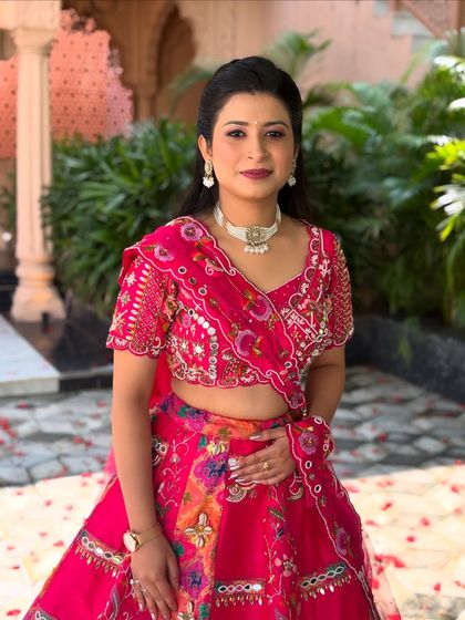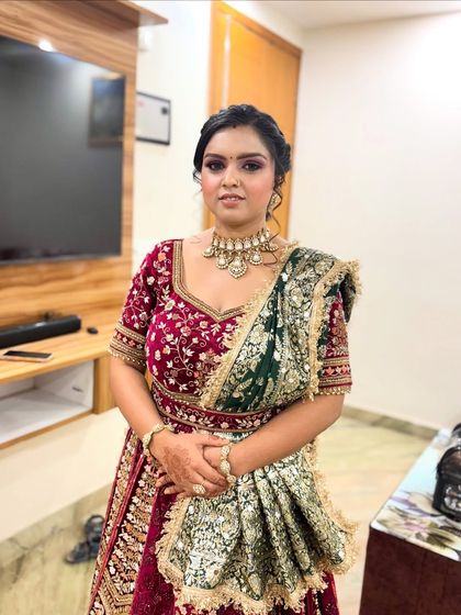 This is my core specialty, creating timeless and breathtaking looks for a bride's main wedding day. I focus on creating customized, tear-proof HD makeup that looks flawless both in person and in high-resolution photos, whether you envision a traditional red lehenga look or a modern pastel ensemble.