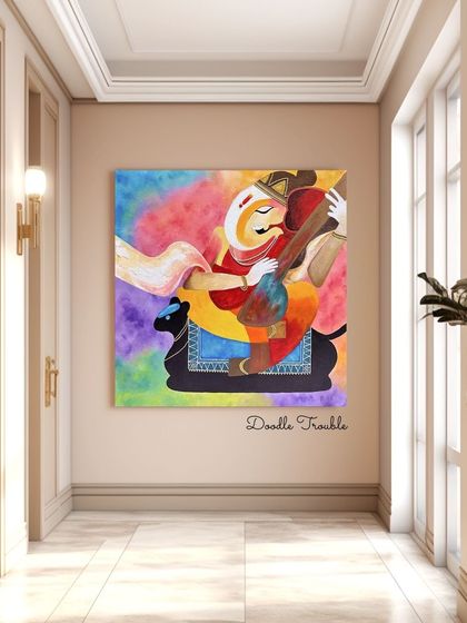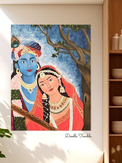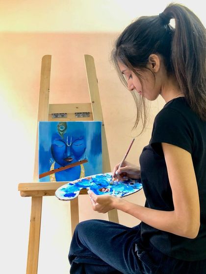 Should I show you the finished art or the messy bits too? I’m all about the creative chaos. My studio’s got Bangalore rains, chai, and sometimes fallen flowers from the park - those lil things spark ideas. Made a Radha Krishna painting for my mum once, poured my heart out, you know? Even festival art, like shouting Ganpati Bappa Morya, feels like sharing my soul. I believe bare walls are boring - I want my art to make homes feel personal, cozy, and a bit magical.