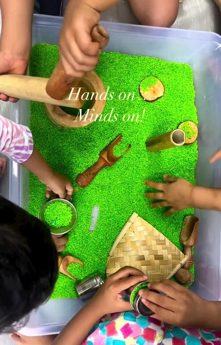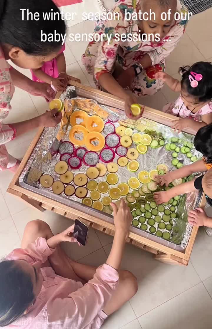 This is the heart of my workshops, where children learn through touch, sight, and sound. Our sensory bins are filled with a rotating variety of taste safe materials like colored rice, water beads, and natural grains, designed to build fine motor skills and stimulate neural pathways in a playful, pressure free environment.