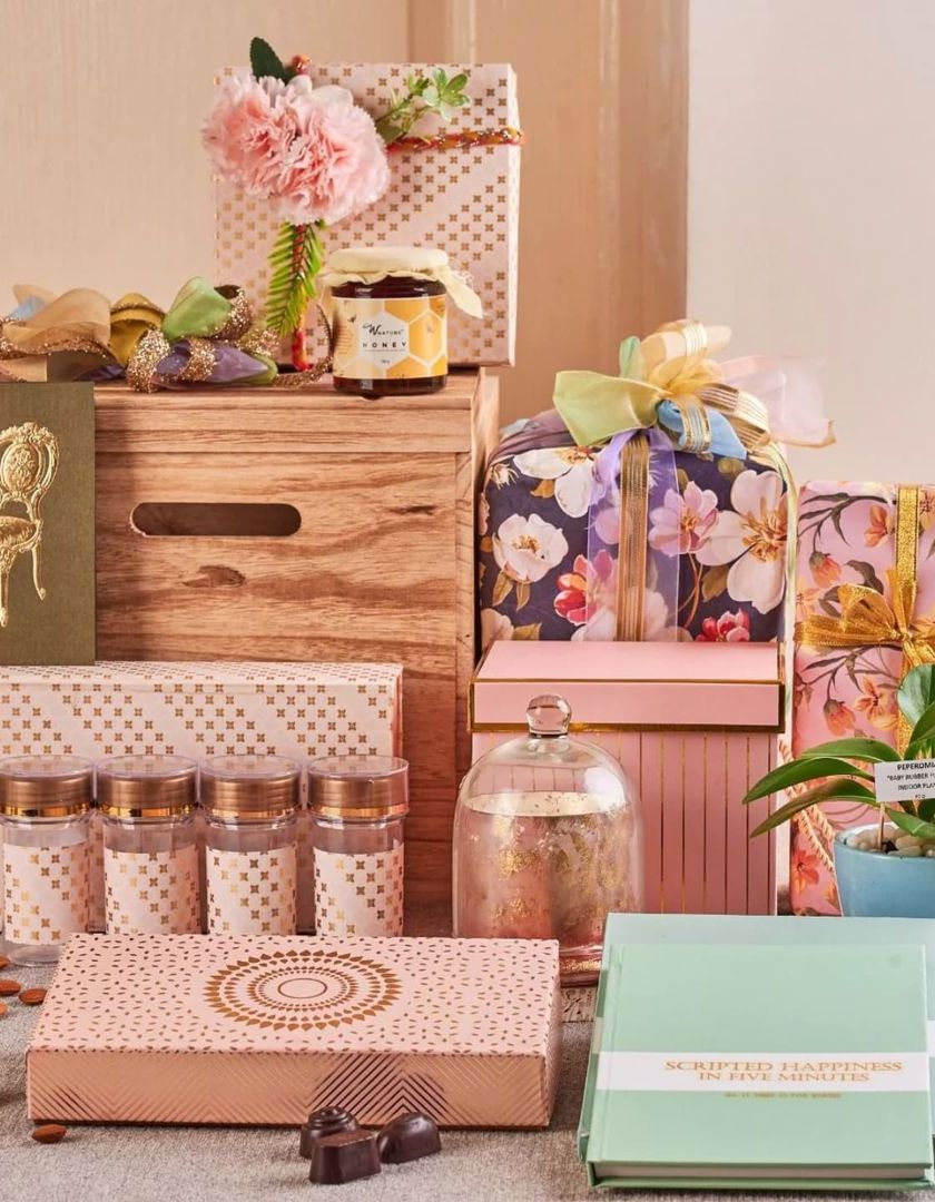 I curate special hampers to celebrate the bride-to-be, from pamper kits to fun bachelorette party supplies. These boxes can include personalized robes, spa essentials, and quirky "Miss to Mrs" themed goodies, all available for pan-India shipping.