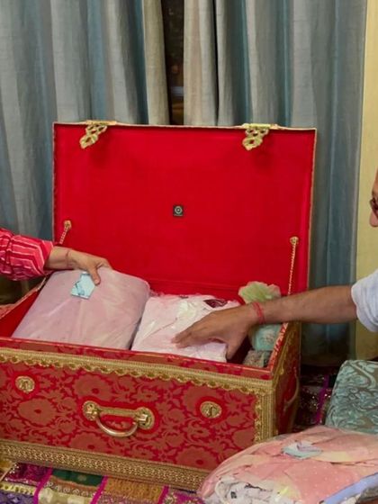I offer both full-service packing and DIY kits to present your wedding trousseau beautifully. Choose from traditional velvet sanduks, modern gold-woven baskets, and elegant trays to match your wedding's aesthetic and ensure your gifts make a grand entrance.