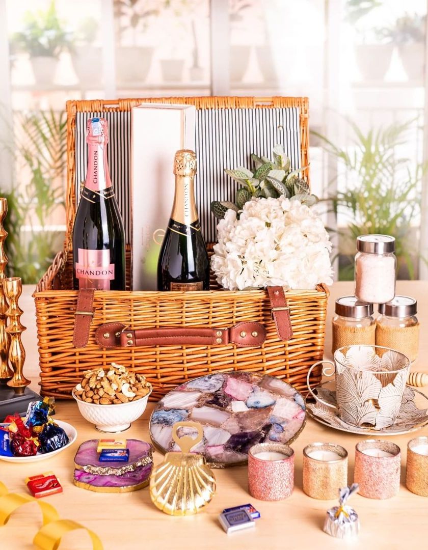 Celebrate the newlyweds with a thoughtfully curated hamper filled with luxury items. I design these with options like champagne, gourmet snacks, personalized wine glasses, and home decor, all presented in elegant picnic baskets or custom boxes.