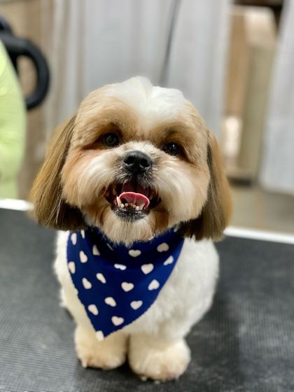 We groom all breeds with safe tools, focus on your dog's comfort and health, do breed-specific cuts only when suitable, and every dog leaves with a bandana and photo.