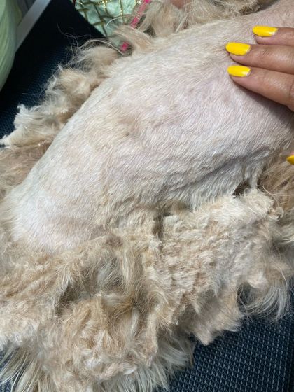We help dogs with painful matting or heavy tick and flea problems by doing careful shave-downs and skin treatments, focusing on their comfort and health instead of just looks.