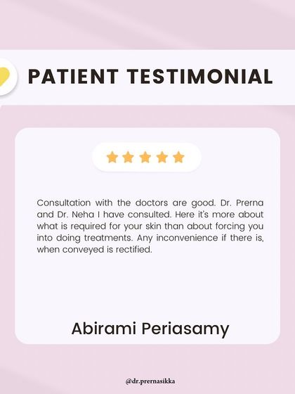 Hi, I’m Dr. Prerna Sikka. Dermatologist in Bangalore, obsessed with cutting through all the skin care noise. I studied MBBS, DDVL, and got my Aesthetic Medicine post-grad from London - all because I truly believe in science-based skincare, not magic pills. You’ll see me breaking down myths, sharing real advice, and making sure you understand your skin’s story. I love watching people’s confidence grow when their skin does.
