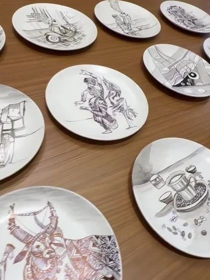 A unique alternative to canvas, my hand-painted plate collections are perfect for dining areas or any feature wall. I illustrate custom themes, from pop culture icons to personal stories, on porcelain plates which are then mounted to create a stunning gallery wall.