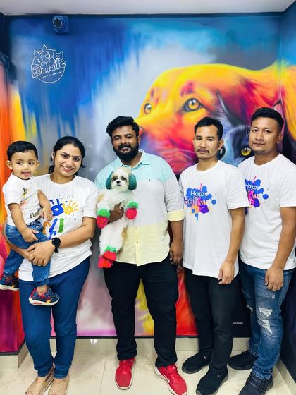 Let your pet be part of the celebration with our special occasion styling. We create fun, temporary, and completely pet-safe color designs for festivals like Holi, birthdays, or any family event, making for unforgettable photos and memories.