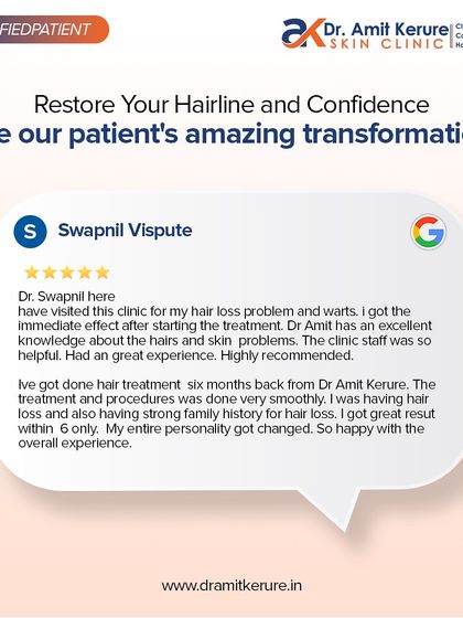 Hi, I’m Dr. Amit Kerure. Dusra kay, mi roz clinic madhe patients baghto (Every day, I see folks in my clinic) who’ve tried crazy viral skin hacks or gone to cheap clinics and landed with botched transplants or burnt skin. I’ve done 1500+ hair transplants in 10+ years, but my kaam (work) is more than just fixing. I care about giving real, honest advice. No magic, just science, and a plan that fits you—not some copy-paste solution.