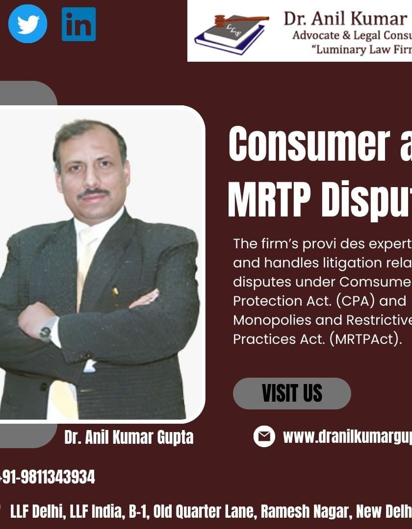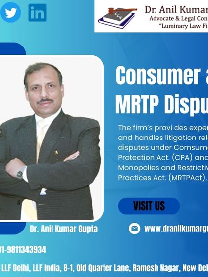 Our firm provides expert legal advice and handles litigation related to disputes under the Consumer Protection Act (CPA). We represent clients at all levels of consumer forums, from the district level up to the National Consumer Disputes Redressal Commission (NCDRC).