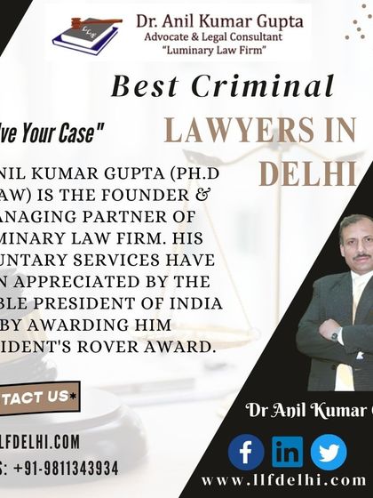 Luminary Law Firm is built on a foundation of professional excellence and proven success. This section highlights the qualifications of our founder, Dr. Anil Kumar Gupta (Ph.D. in Law), and our firm's extensive experience and accolades, including recognition from the Hon'ble President of India.