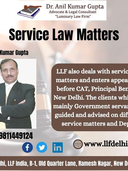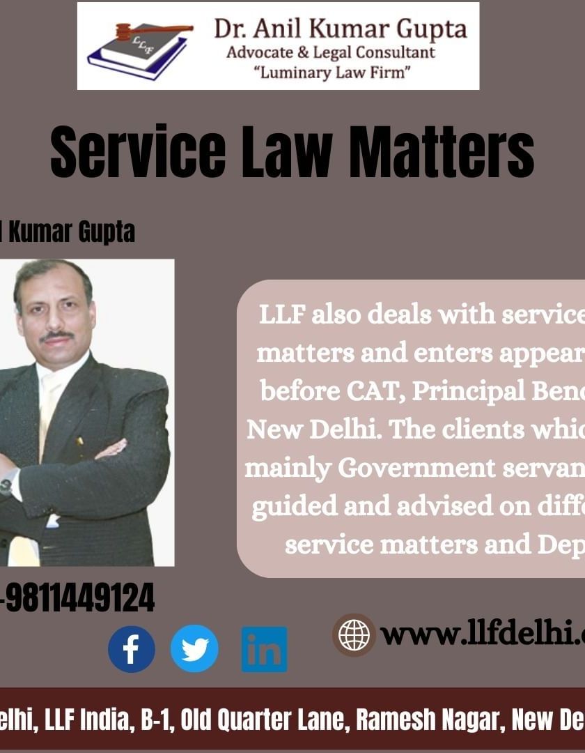 We possess sufficient expertise in service law matters, specifically for government and public sector employees. We regularly represent clients before the Central Administrative Tribunal (CAT), Principal Bench at New Delhi, advising on departmental proceedings, pension issues, and other service-related disputes.