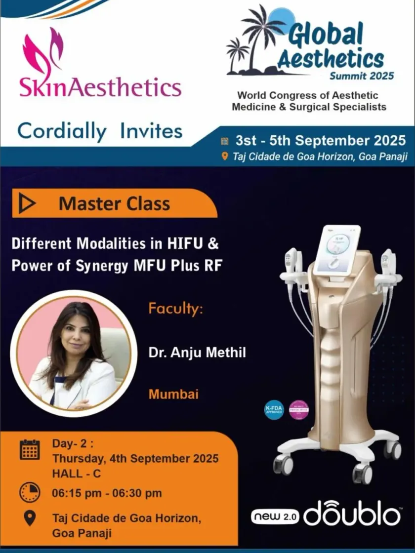 I believe in constantly learning and sharing knowledge. I am honored to be a trainer and panelist at national and international conferences, where I conduct workshops for other dermatologists on advanced techniques like fillers, threads, and exosome therapy.