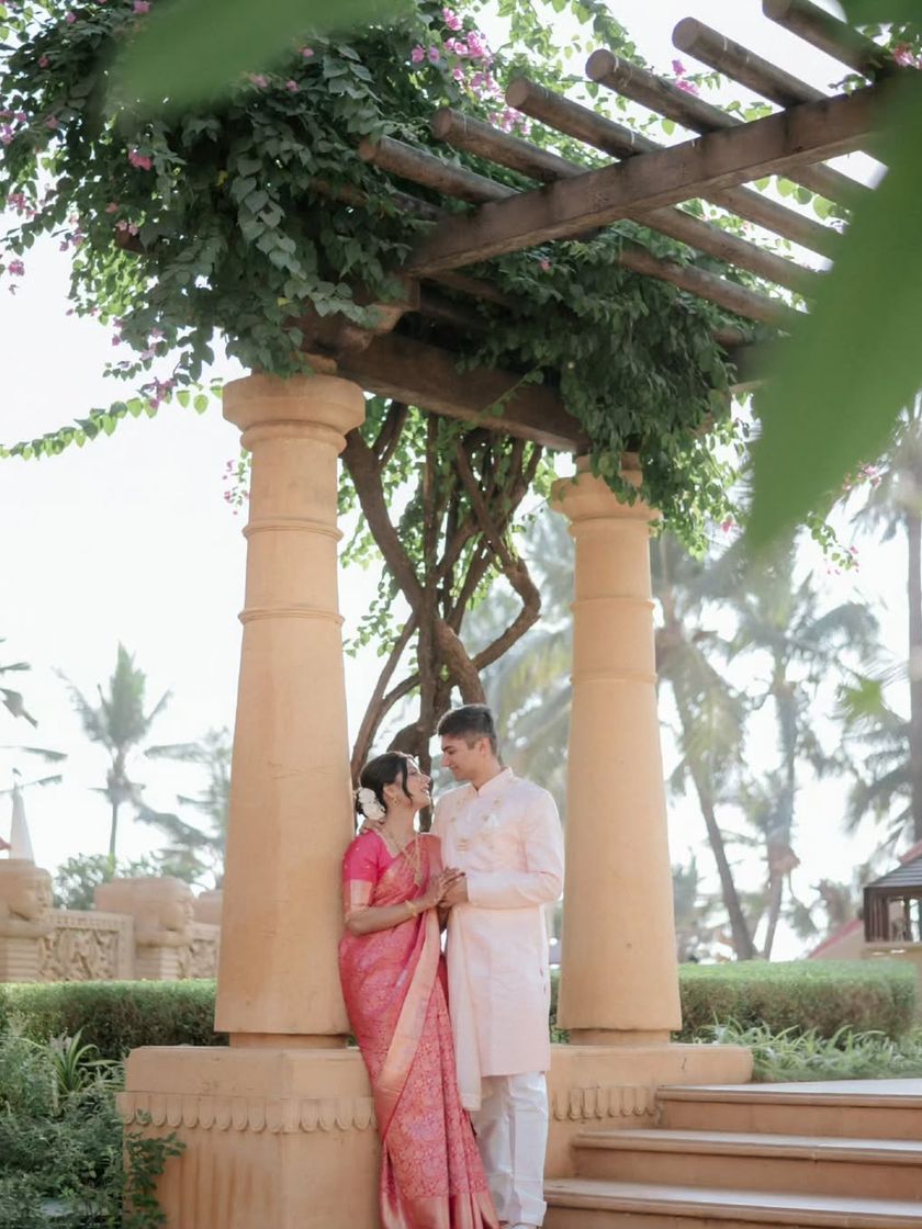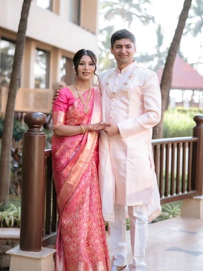 A wedding is about two people, and their styles should complement each other perfectly. I offer draping services for grooms' shawls and stoles, and I love working with couples to create a cohesive and elegant look for their photos and events.