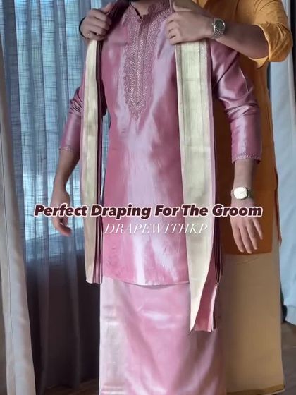 The final look is what matters most. This gallery shows how my draping for the groom completes the picture, ensuring he stands proudly beside his partner, looking sharp and confident on their big day. I work with both traditional and modern styles to create a harmonious look for every couple.