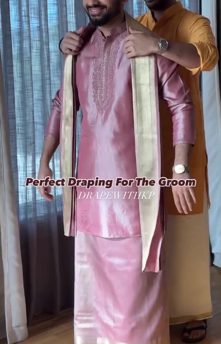 Traditional wear is versatile. I love styling grooms in modern combinations, pairing the classic mundu or veshti with silk kurtas, printed shirts, and unique angavastram drapes. These looks are perfect for engagements, receptions, and festive occasions like Onam.