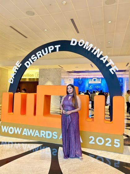 I believe in daring, disrupting, and dominating, and I'm humbled when my work is recognized by the industry. This cluster is a collection of my proudest achievements, including being named Best Female Emcee at the WOW Awards Asia, my academic pursuits in Indian scriptures, and being appointed a Goodwill Ambassador. These accolades fuel my passion to keep raising the bar.