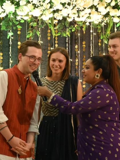 Global Emcee & Anchor - I host everything—corporate team-building, weddings, sangeet, live concerts, baby showers, even TV shows.