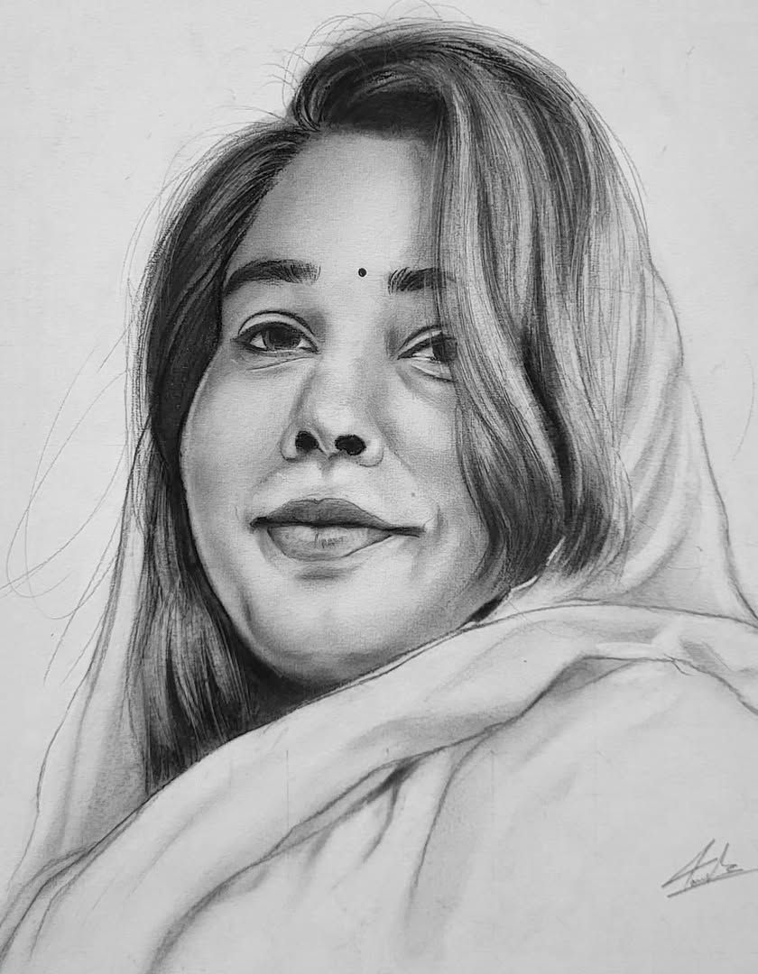 This is my core service. I use high-quality graphite and charcoal on thick Brustro paper to create realistic, black and white portraits that last. This gallery includes a range of commissioned works, from detailed individual portraits of men and women to more expressive character studies.
