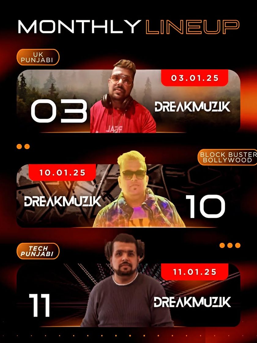Here's a collection of my branding videos and promotional flyers for upcoming gigs across Mumbai, Goa, Pune, and Hyderabad. This shows the range of events I play, from Techno nights to UK Punjabi and Bollywood parties.