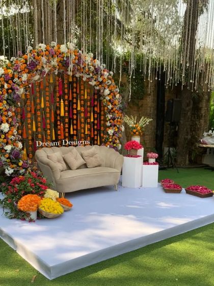 We design and build personalised wedding decor for every function from engagement to reception, using fresh flowers, custom structures, and never repeating the same setup.