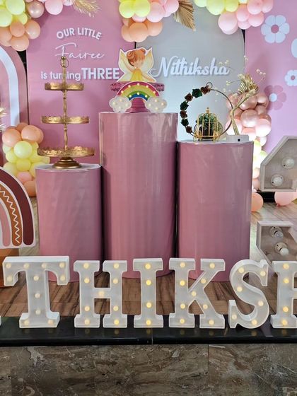 We set up kids' birthday parties with custom themes, personalized backdrops, balloon garlands, and decorations for any space, so you just share your idea and we handle the rest.