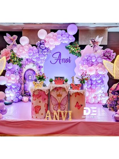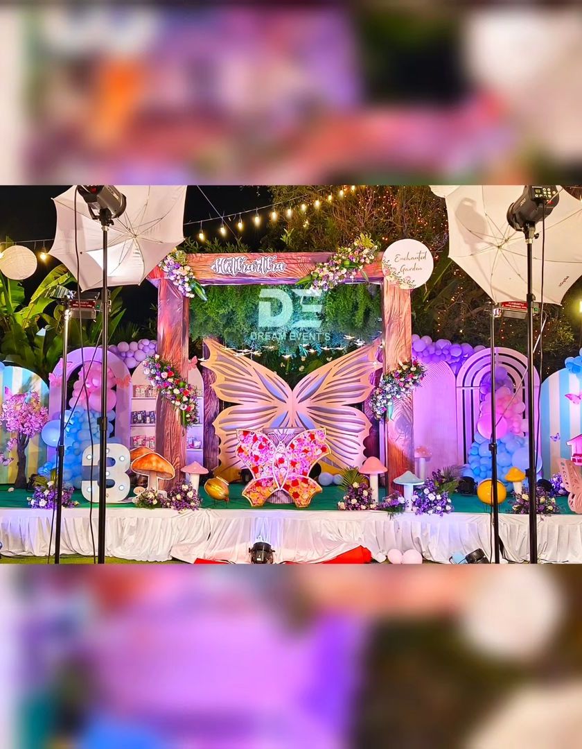 Step into a world of magic and wonder. I specialize in creating dreamy enchanted parties with themes centered around butterflies, fairies, and angels, perfect for making your little girl's birthday wishes come true. These setups feature pastel color palettes, shimmering details, and custom elements like large butterfly wings and light-up names.