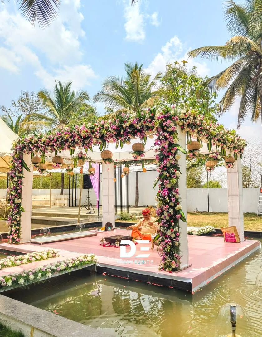 The mandap is the heart of the wedding, and I craft beautiful structures for your sacred vows. My designs range from traditional floral mandaps to unique concepts like stunning setups built over water.