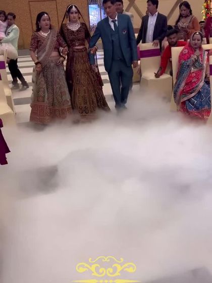 Your entry and Varmala are the highlights of the wedding, and I make sure they are unforgettable. We specialize in creating these 'fairytale' moments, using effects like cold pyrotechnics, dry ice fog, flower aisles, and dramatic rainbow smoke for the Varmala ceremony.