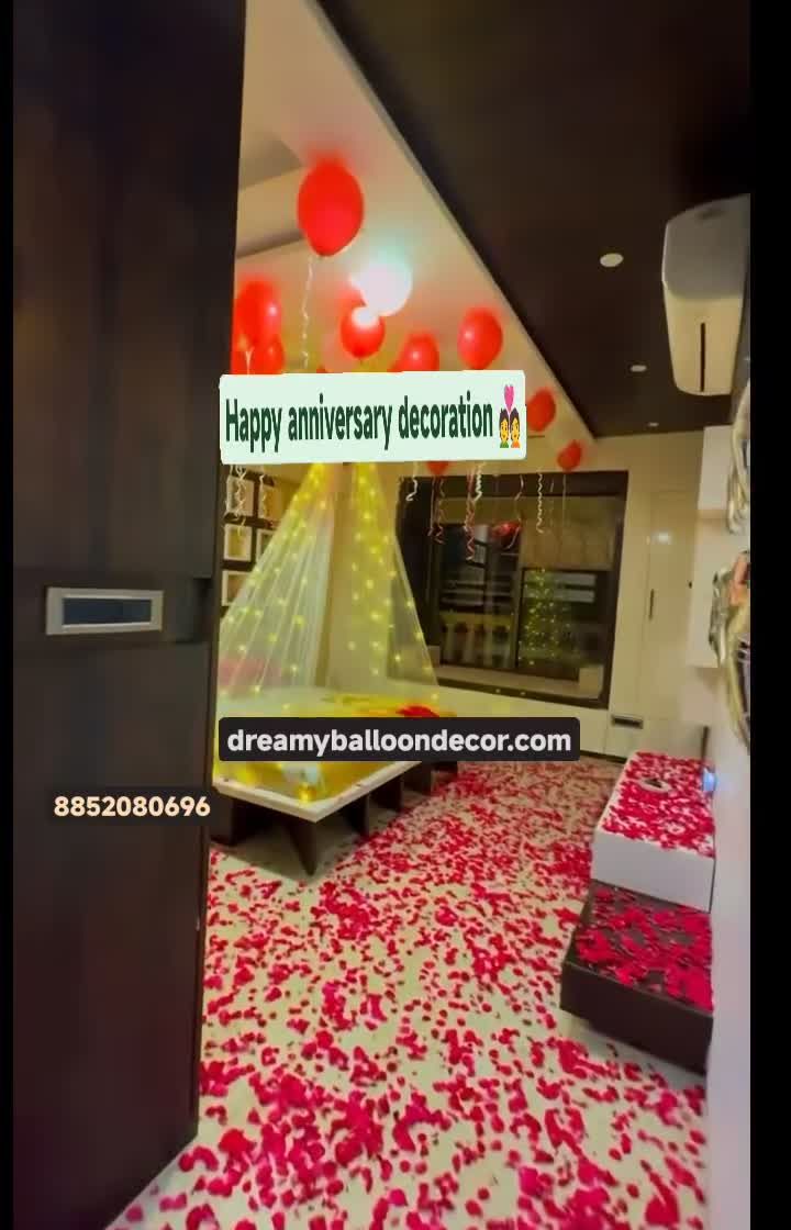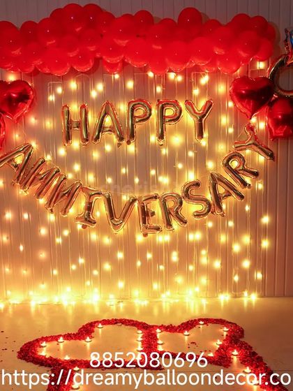 Celebrate another year together with a special room decoration. I can create custom setups with 'Happy Anniversary' or 'Happy Birthday' foil balloons, specific color themes, and all the romantic touches like candles and flowers to make the day memorable.