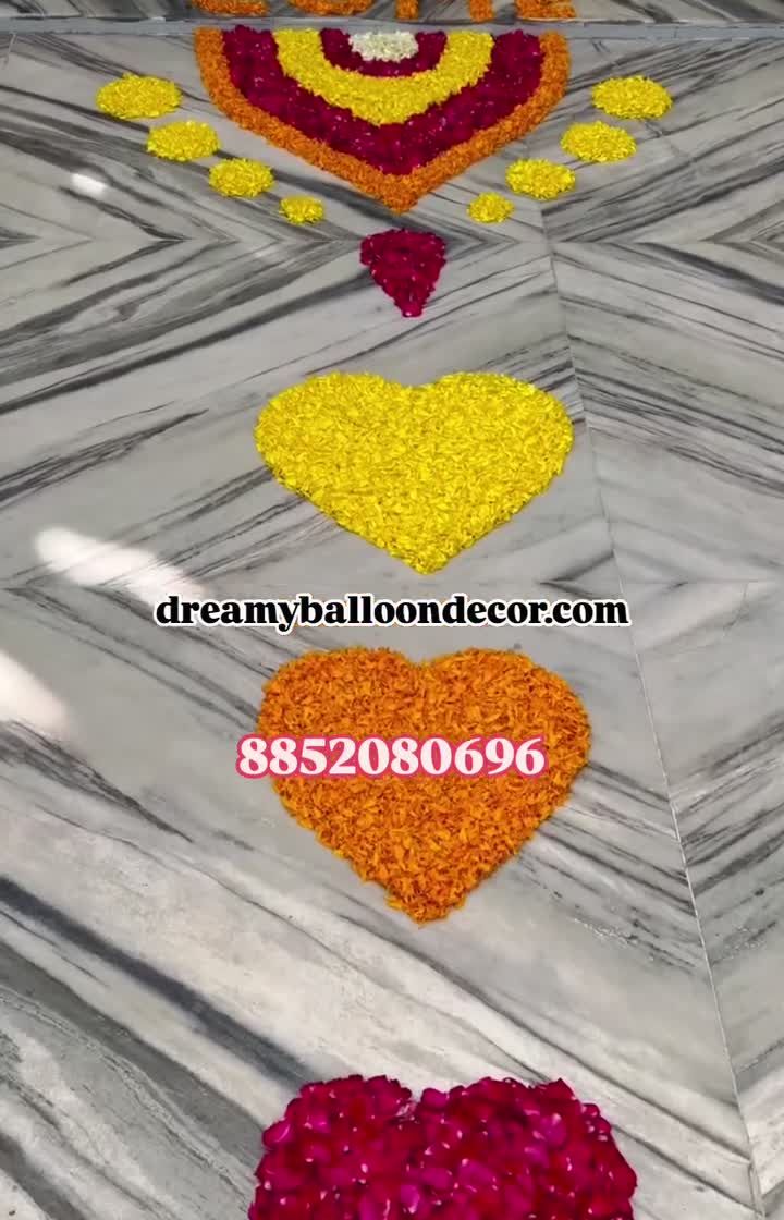 Make a grand entrance with beautiful floor art made from fresh flower petals. I create traditional rangoli-style paths and welcome messages for new brides, babies, or any special occasion, using colorful marigolds and roses.