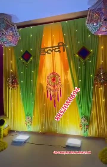 I bring traditional celebrations to life with vibrant decor for your Haldi or Mehendi ceremony at home. My service includes setting up backdrops with bright yellow and green drapes, marigold flower arrangements, Rajasthani umbrellas, and custom Hindi signs.