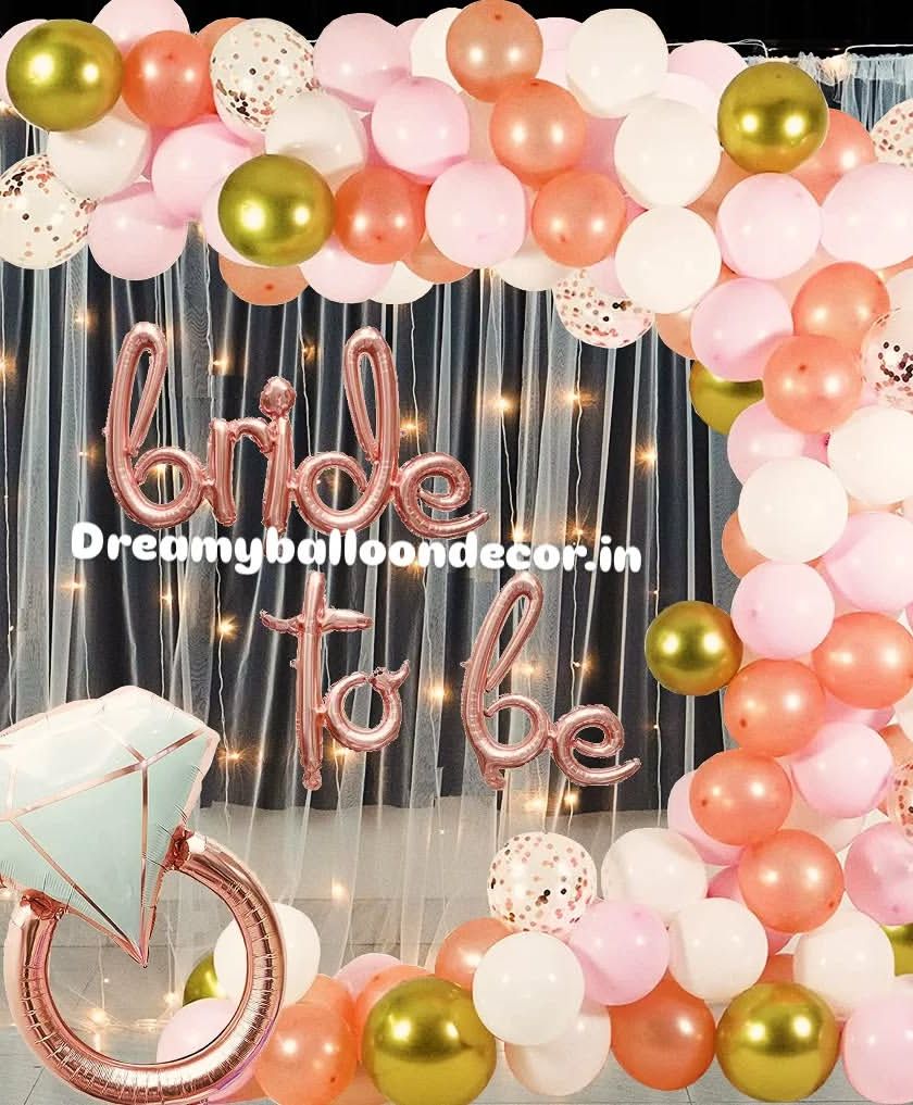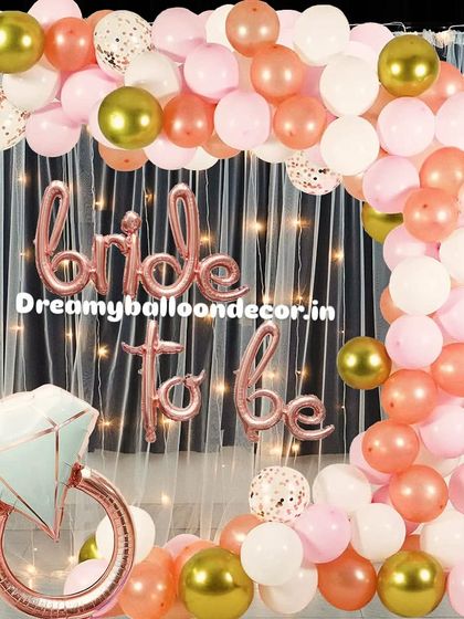 I design picture-perfect backdrops for 'Bride to Be' parties and bachelorettes. Setups include balloon arches, shimmery curtains, custom foil letters, and fun props like giant ring or champagne bottle balloons in themes like rose gold, classic black and gold, or any color you choose.
