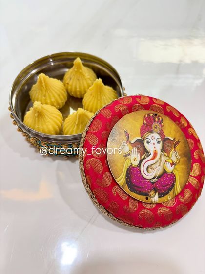 I pour my heart into creating these return gifts for Ganesh Chaturthi. From vibrant potli bags to elegant Modak boxes and divine keepsakes, each item is designed to add a traditional and personal touch to your celebrations. Please plan ahead as these require at least 15 days to prepare.