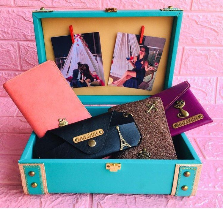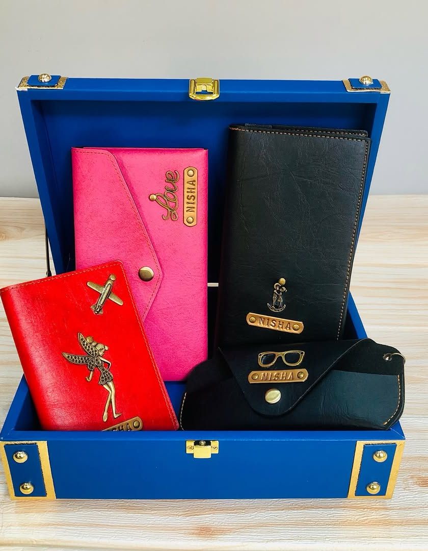 I specialize in creating memorable favors for your big day, especially for destination weddings. Choose from personalized wallets, passport covers, and spectacle cases, which can be bundled into beautiful travel-themed hampers for your guests.