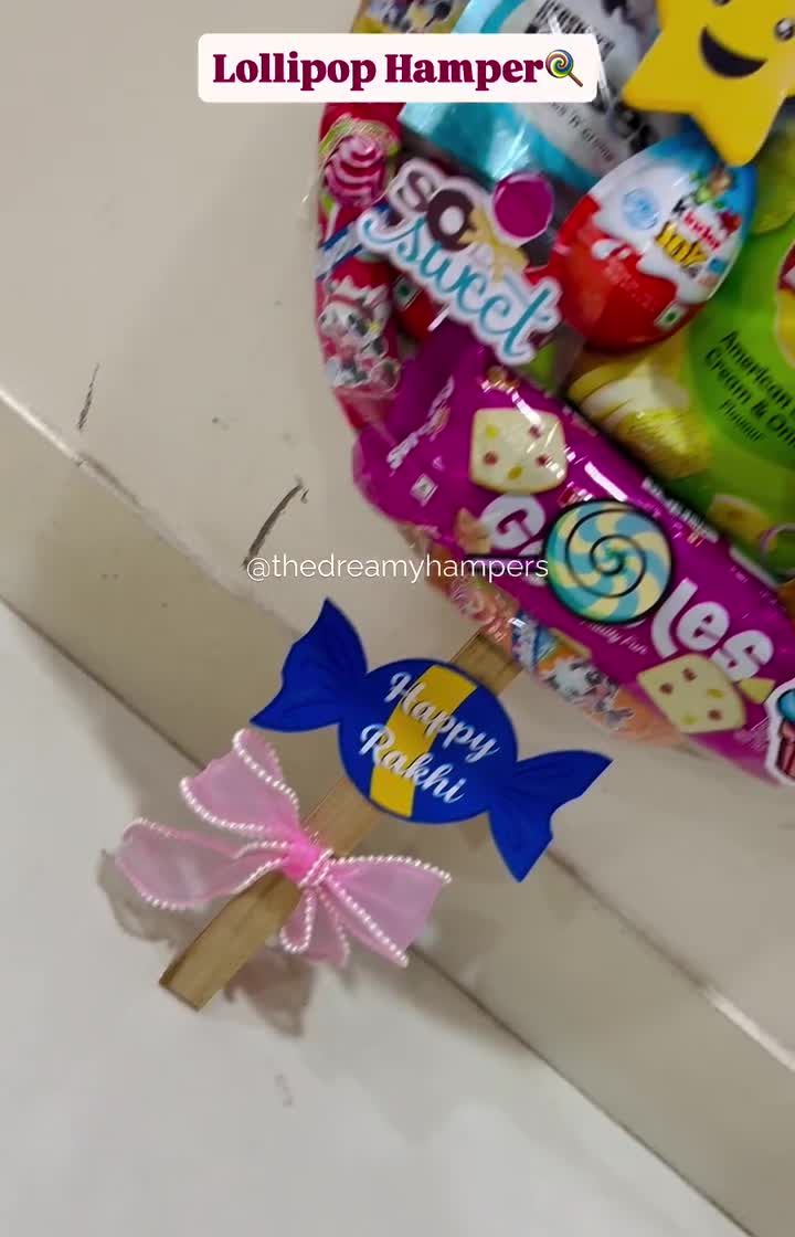 I create delightful hampers that look as good as they taste. You can choose from giant lollipop arrangements packed with snacks or unique 'cakes' made from chocolates like KitKat and Dairy Milk, all personalized for your special occasion.