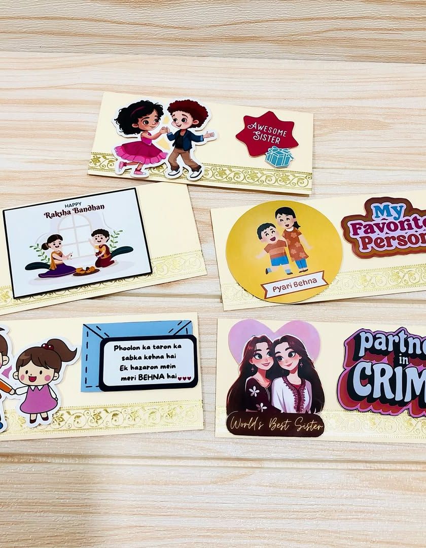 I handcraft special cards and envelopes for celebrations like Raksha Bandhan. These aren't just cards; they are keepsakes, often filled with photos and a small treat to make your festive greetings extra memorable.