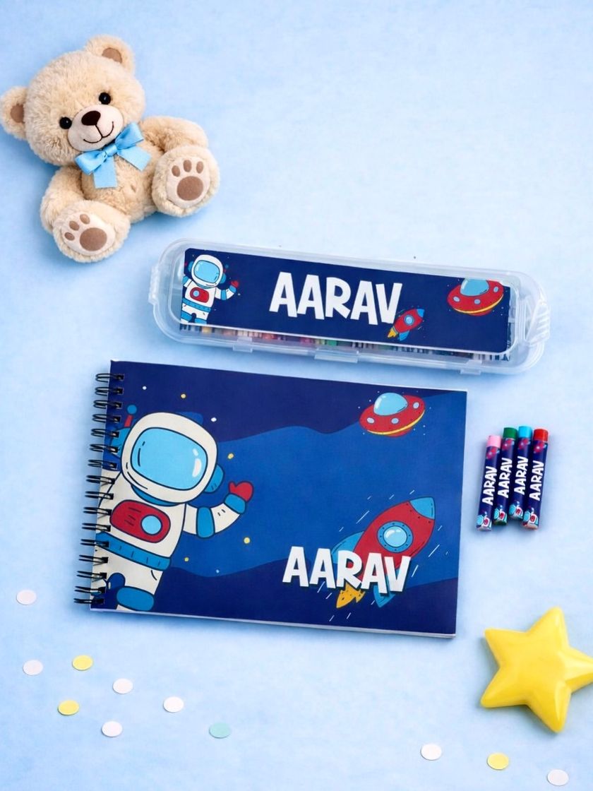 I design custom supplies to make school and creative time more exciting for your child. This includes themed drawing books with crayon sets, sturdy book racks, and durable name stickers for labeling all their belongings.