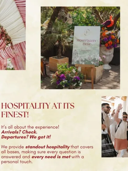 Your people matter. I’m obsessed with making sure guests feel welcome, from airport pickup to bangle bars and late-night chai. My team runs a hospitality desk at the venue, helps with travel, and keeps things interactive and easy. Wedding guest hospitality services are part of the package - no awkward moments, just good vibes.