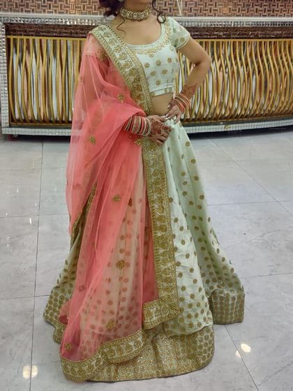 - Heavy bridal lehengas in ivory, pista green, and pink for those shaadi (wedding) moments