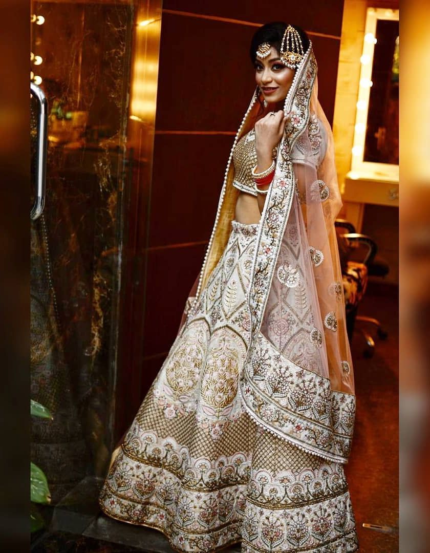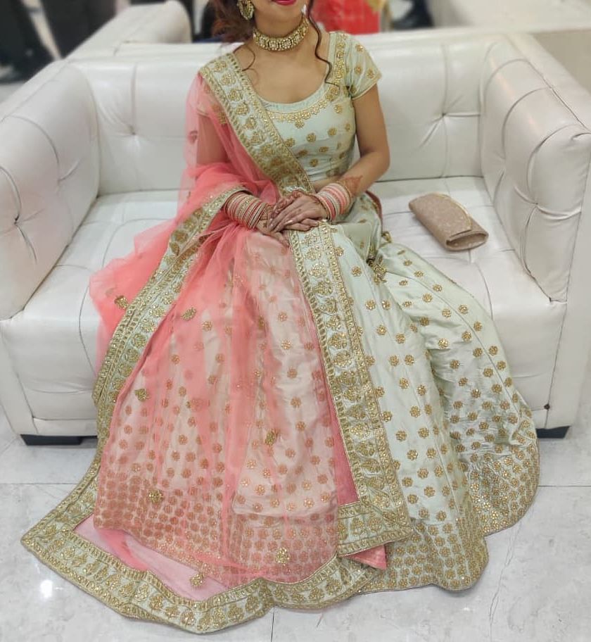 Our collection features heavily embroidered lehengas perfect for your wedding day or engagement ceremony. These outfits, like our popular ivory and pink set, are designed with intricate details to give you a grand and memorable look without the expense of buying.