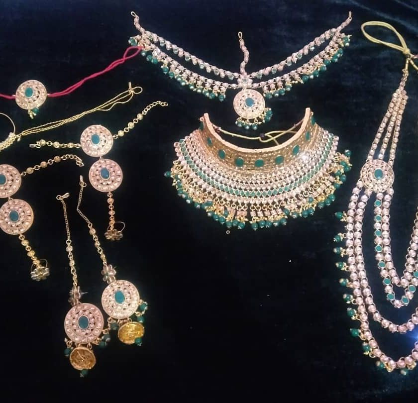 Get the full royal look for your wedding day without the stress of buying. My bridal sets include everything you need: a choker, a long necklace (rani haar), matching earrings, maang tikka, nath (nose ring), and hathphool (hand harness). These are traditional, heavy-look sets designed to make you feel like a queen.