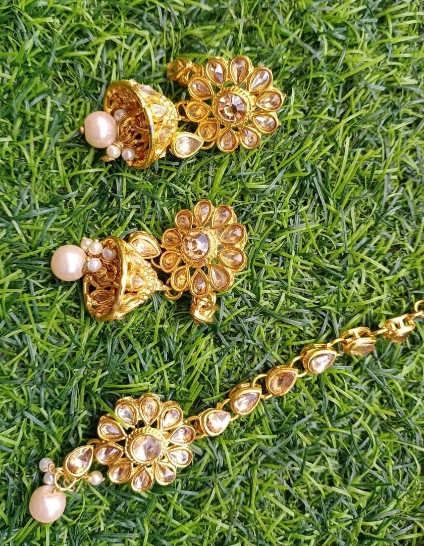 Perfect for bridesmaids, family, or wedding guests who want to shine. These rental sets are lighter than full bridal sets but still make a statement. They typically include a necklace, earrings, and sometimes a maang tikka, available in Kundan, Polki, and pearl designs.