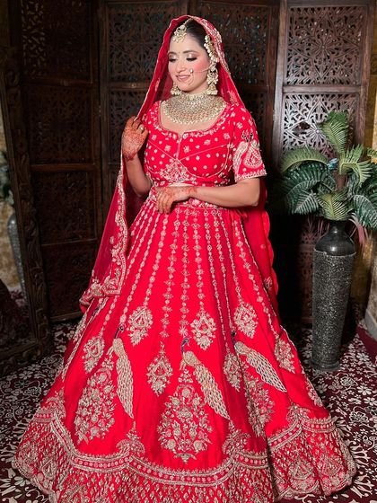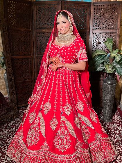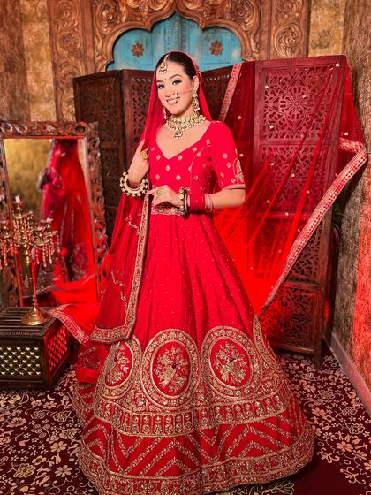 We offer coordinated bridesmaid lehengas designed to complement the bride's attire perfectly. Our collection features various styles and colors to match different wedding themes and preferences.