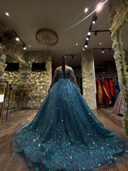 We offer a luxurious collection of ball gowns featuring voluminous skirts and intricate detailing. Our gowns blend traditional elegance with modern design elements through detailed embellishments, sequins, and premium fabric selection.