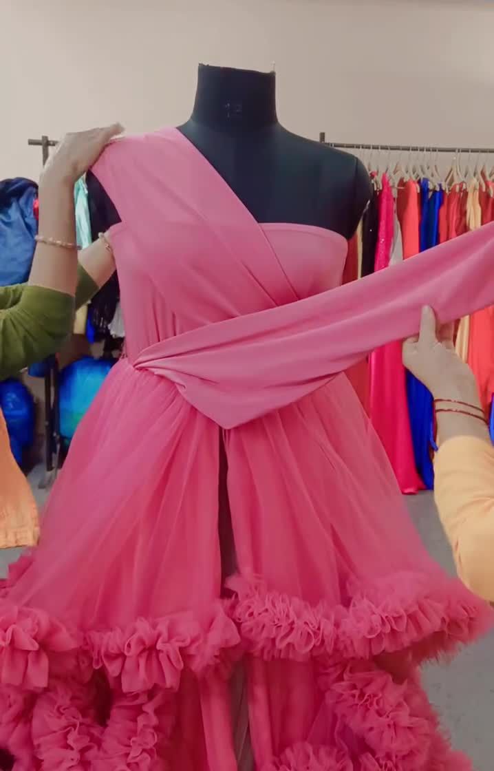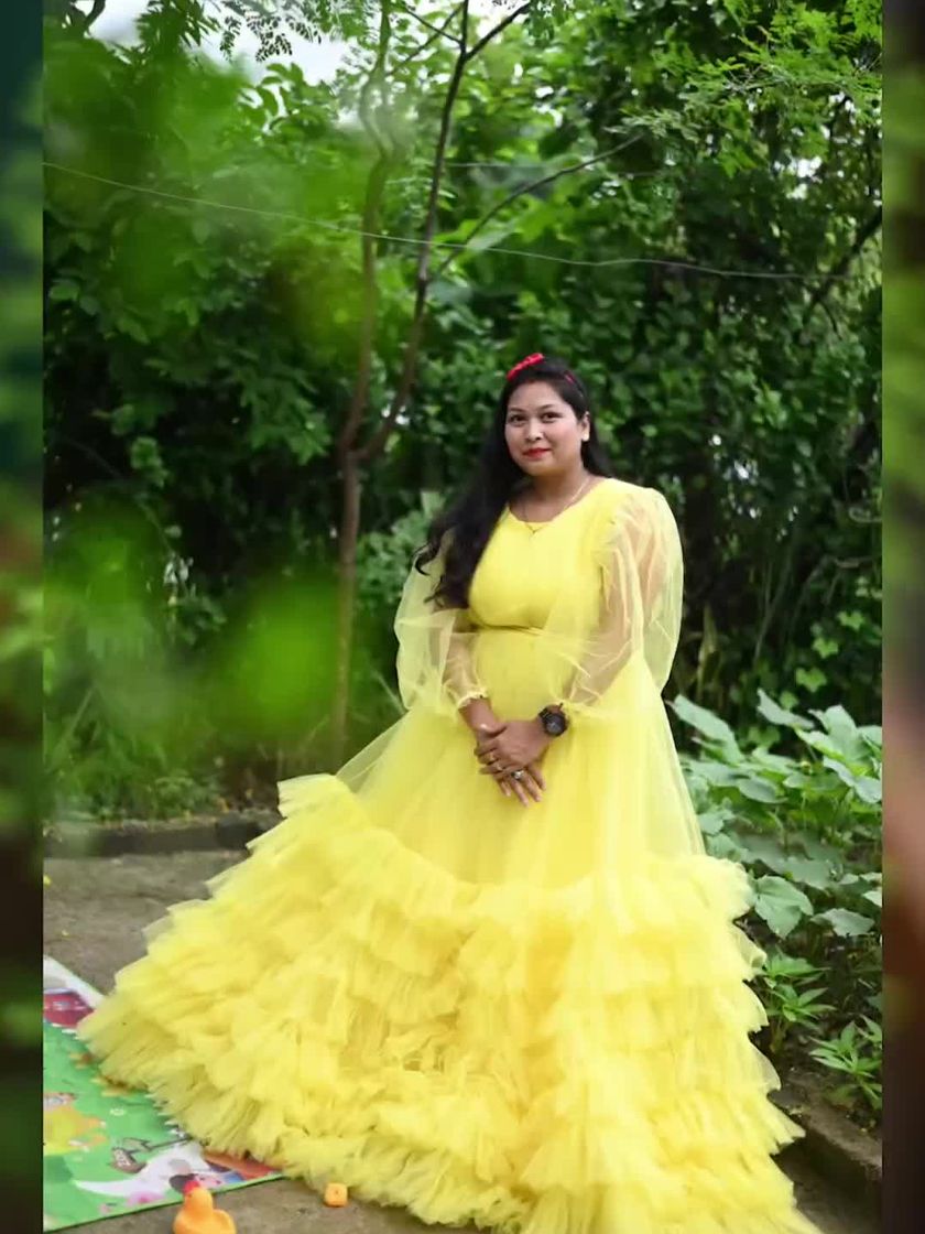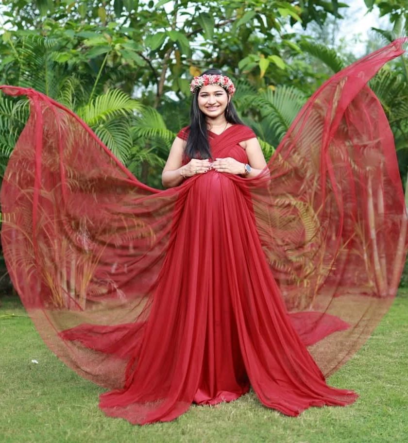 For a chic and modern look, I offer a collection of mermaid and bodycon gowns. These dresses are made from comfortable, stretchy fabric that gracefully hugs your curves and accentuates your baby bump. Many of these styles feature unique details like flowing capes, lace accents, or dramatic ruffled trains to add a touch of flair.