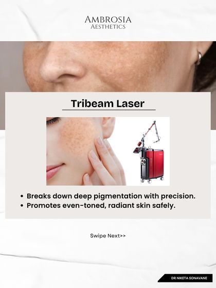 I tackle stubborn pigmentation, melasma, and sun spots with a multi-layered approach. I combine advanced lasers like Tribeam with customized peels and skin boosters to break down pigment and restore your skin's natural, even-toned radiance.