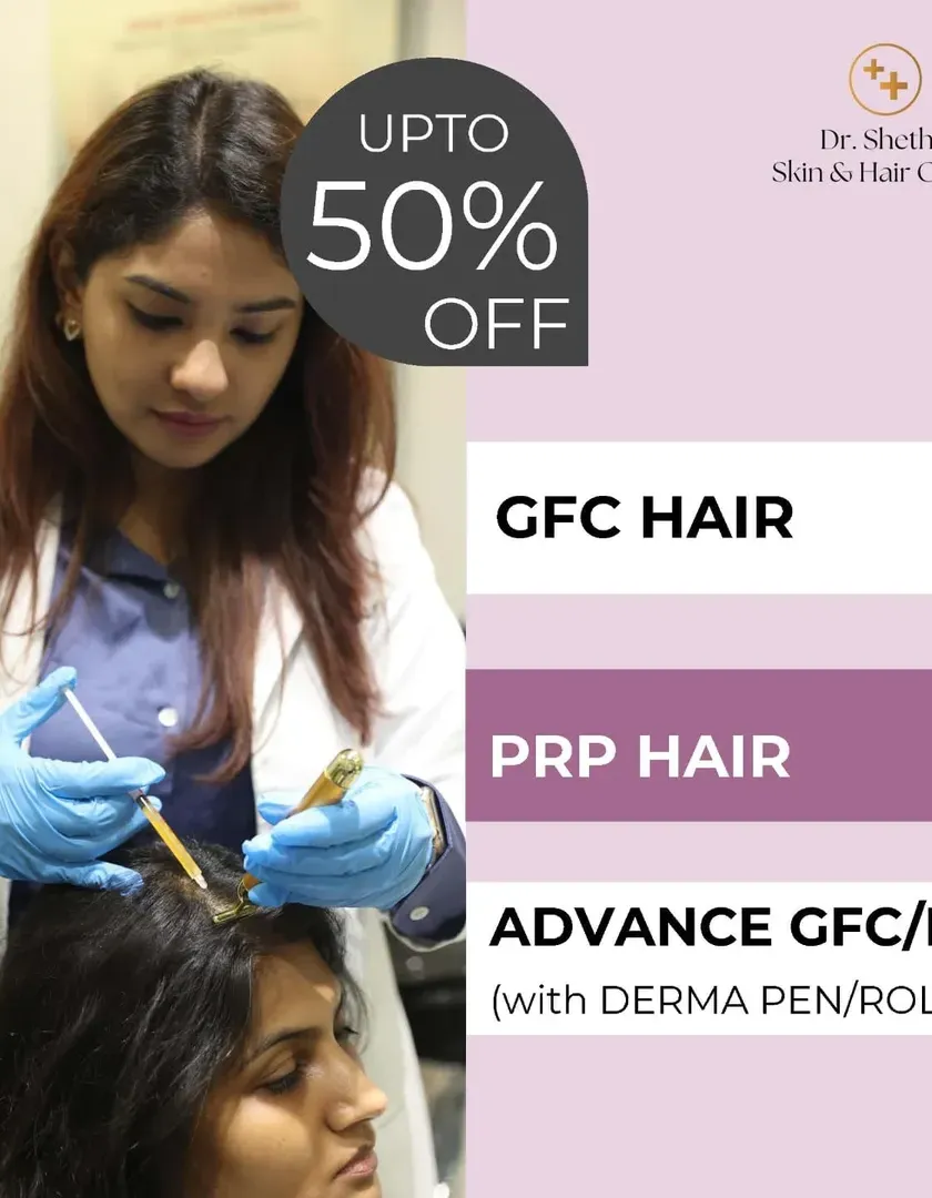 We specialize in Platelet-Rich Plasma (PRP) and Growth Factor Concentrate (GFC) therapies, tailored for Indian hair. These treatments use your body's own healing properties to stimulate follicles, improve hair thickness, and reduce hair fall.