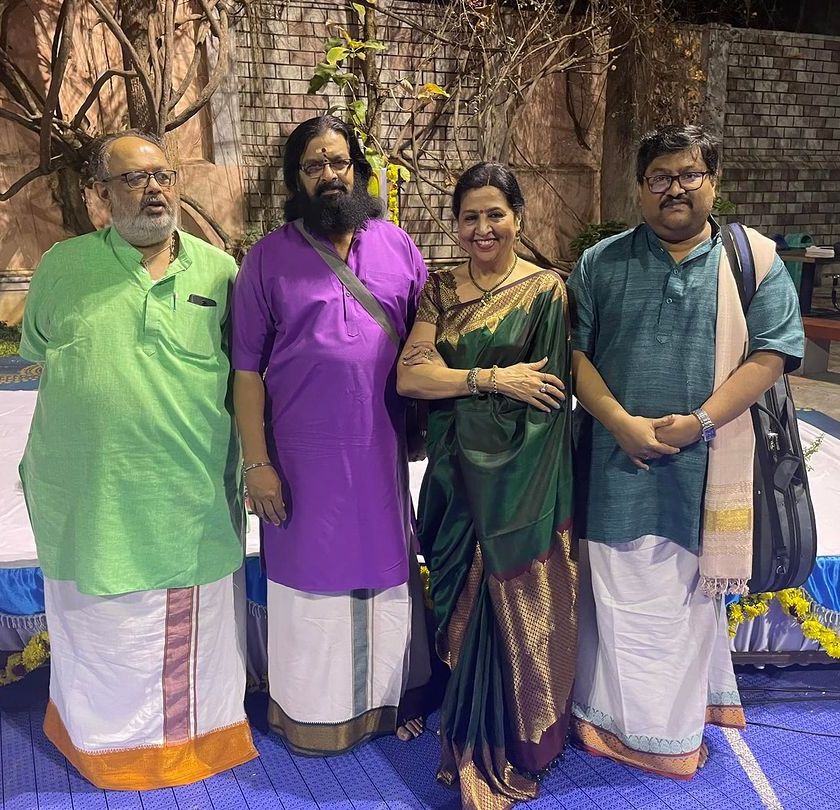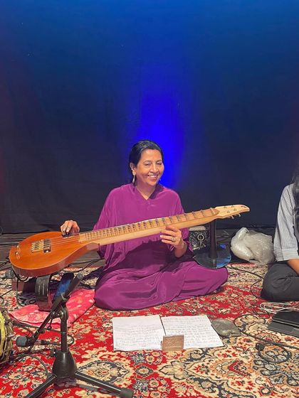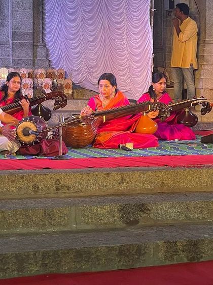 These are my solo Carnatic veena concerts, where it's just me, my veena, and my wonderful co-artists on mridangam, violin, or ghatam. I perform in all kinds of venues, from grand auditoriums for music festivals to intimate temple settings for cultural events.