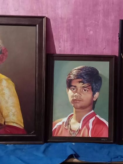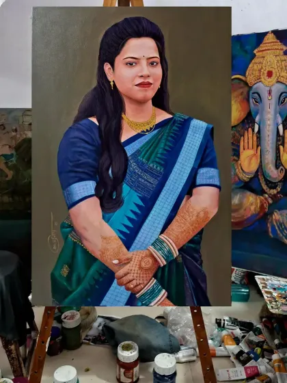 My training from Sir J.J. School of Art taught me to look for details others might miss. I paint with acrylic on canvas, always focusing on the small things - maybe it’s the shine in a bindi, a quirky grin, or the folds of a dupatta. That’s where the story really sits, na?