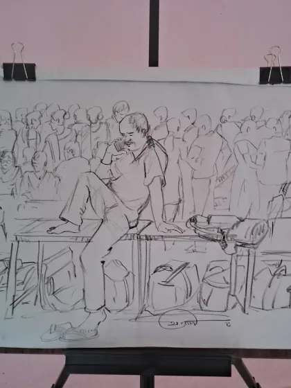 I sketch life as it happens. Whether it's a bustling crowd, a single quiet moment, or a small group deep in conversation, I use just my pencil and sketchbook to catch those real, unplanned moments. My sketches aren't fancy or posed - I look for natural gestures and honest expressions, even the ones people don't realise they're making. It's like giving everyone a mini story, drawn live.